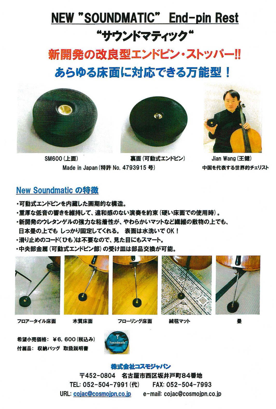 可動式エンドピン内蔵